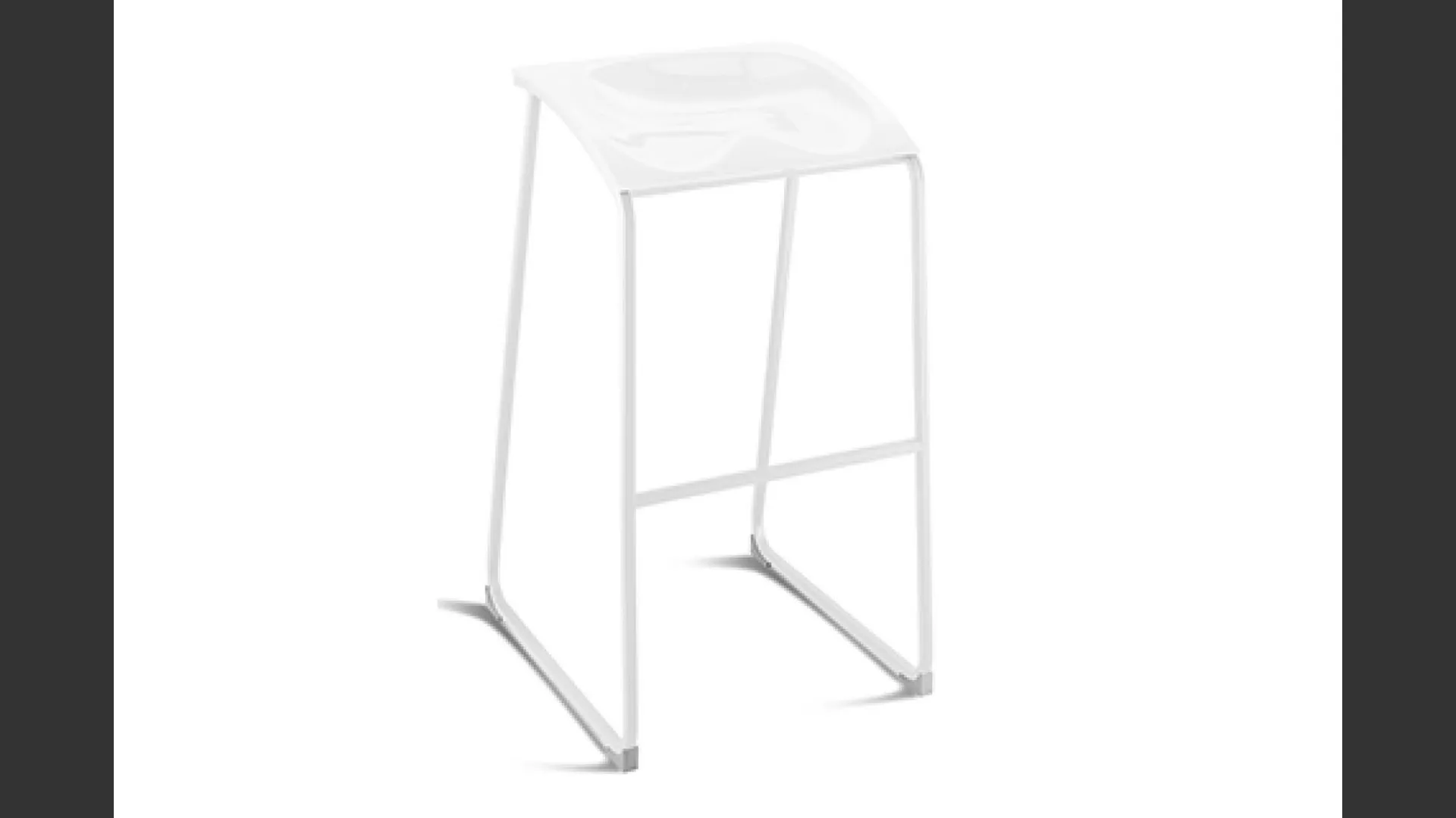 Stool with painted metal structure and acrylic seat.