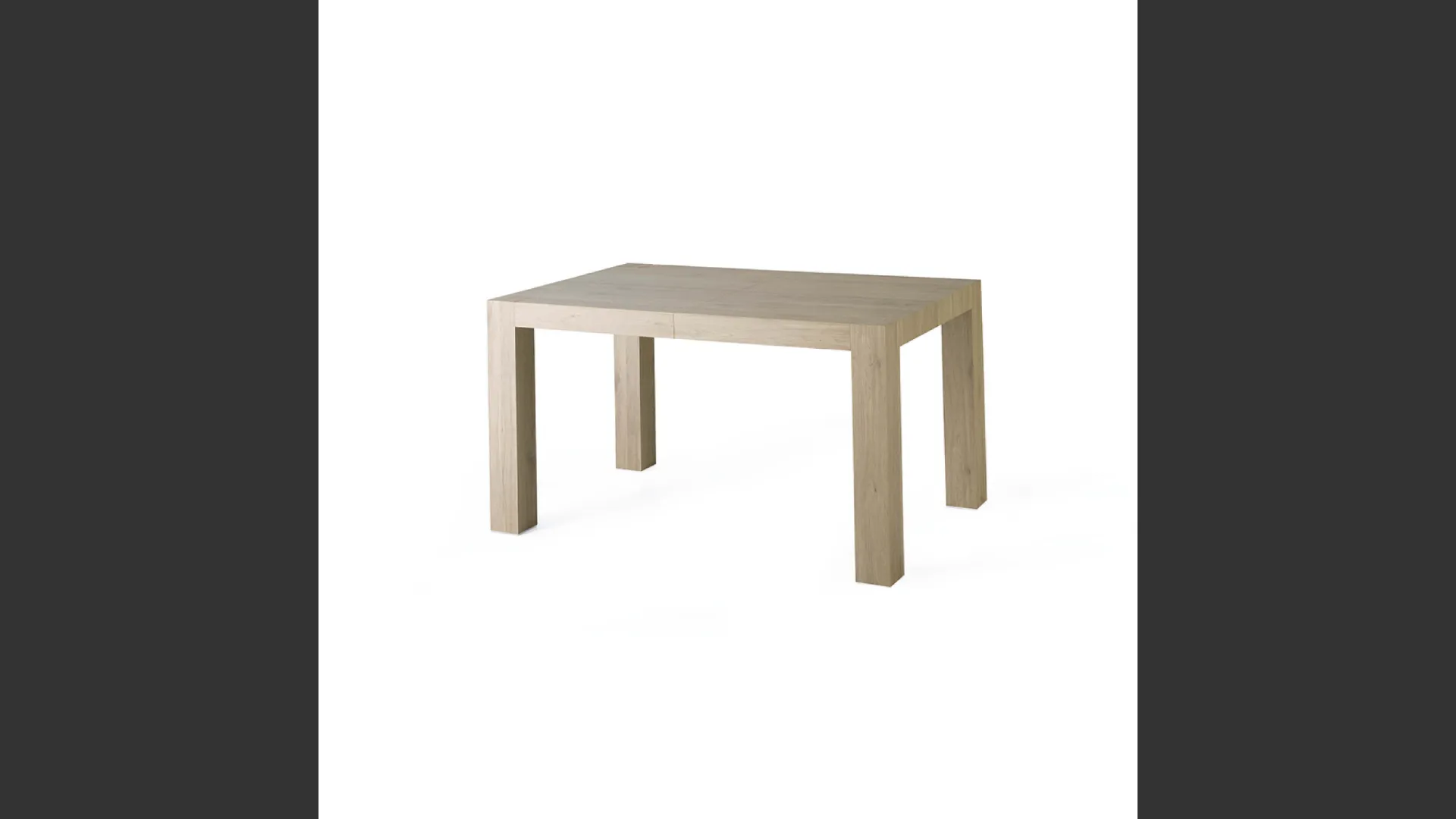Extendable table with two 38 cm extensions. Wood-clad metal frame and painted wooden legs. 2 cm thick TSS melamine-faced chipboard top.