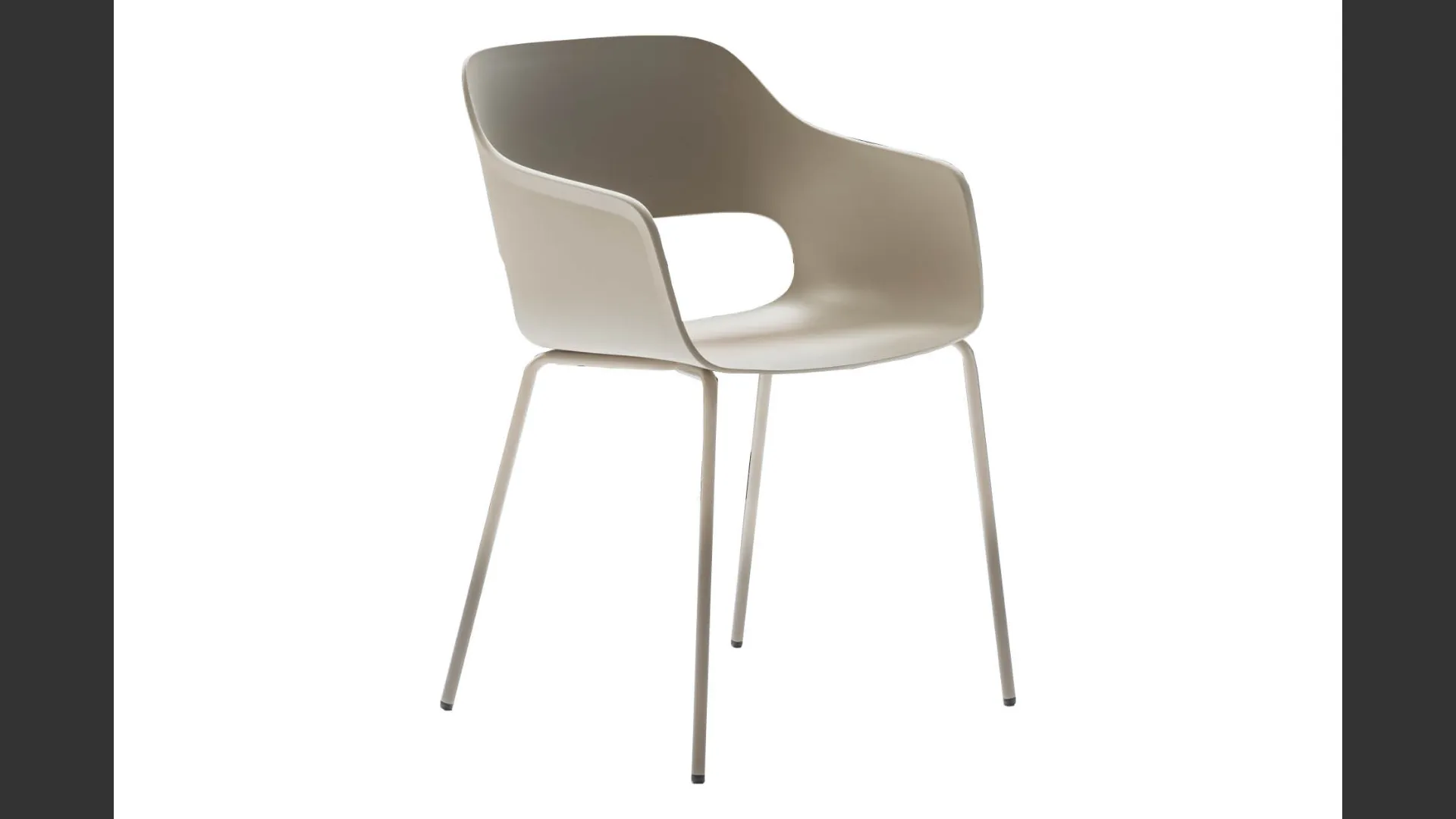 Chair with painted metal frame and seat and backrest in polypropylene.