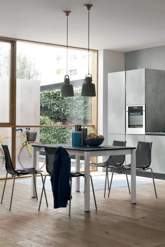 The dining table both unites and at the same time divides the area dedicated to meal preparation and the dining area. The continuity must be based on style, materials, shapes and proportions, but also on colors. Stosa offers models for every need: rectangular shapes prevail, but there are also round and square ones. Some are also extendable, therefore ideal for those who need to optimize the available space. Each Stosa kitchen also includes the table, but the customer is free to make a different choice, thus expanding the possibilities for customization.