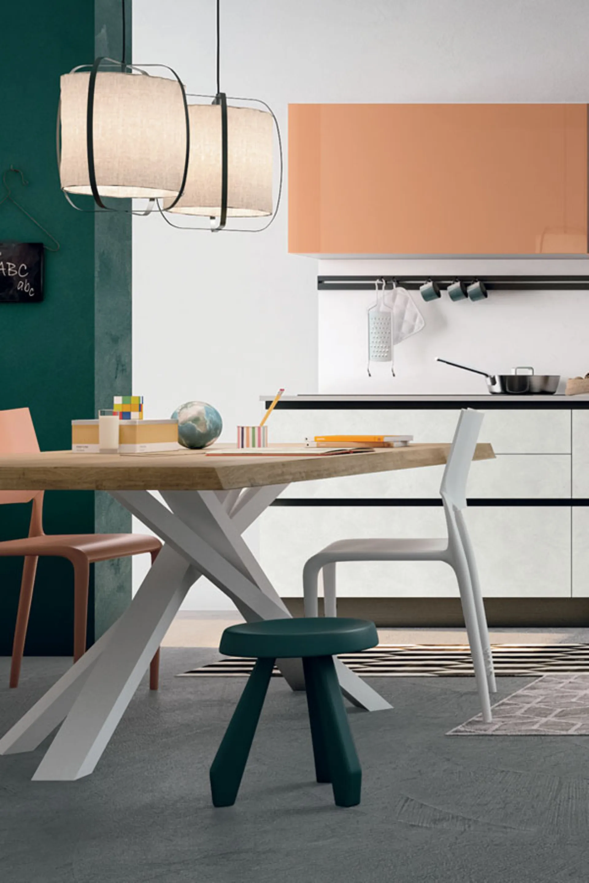 In the production of dining tables, Stosa uses different materials: wood, metal, laminate, glass. And often focuses on material combinations, which not only are very popular but also allow for creating additional references and connections between the kitchen and the rest of the living area. Stosa tables are beautiful, durable, and resistant. They are an invitation to conviviality but also furnishing elements with great expressive power. Come visit us or ask for a free online consultation, we will help you find your ideal model.