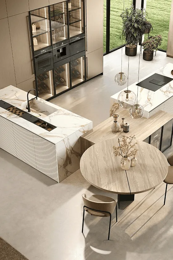 The high degree of customization that distinguishes the Color Trend kitchen is given not only by the rich range of colors, but also by the possibility of choosing elements belonging to other models for the composition, thus achieving new creative mixtures. With this project, Stosa truly reaches the highest expressions of design flexibility. In addition, advanced structural solutions are added, for example, the mechanism inside the wall units that allows you to lower the shelves, easily reaching even the objects placed higher up.