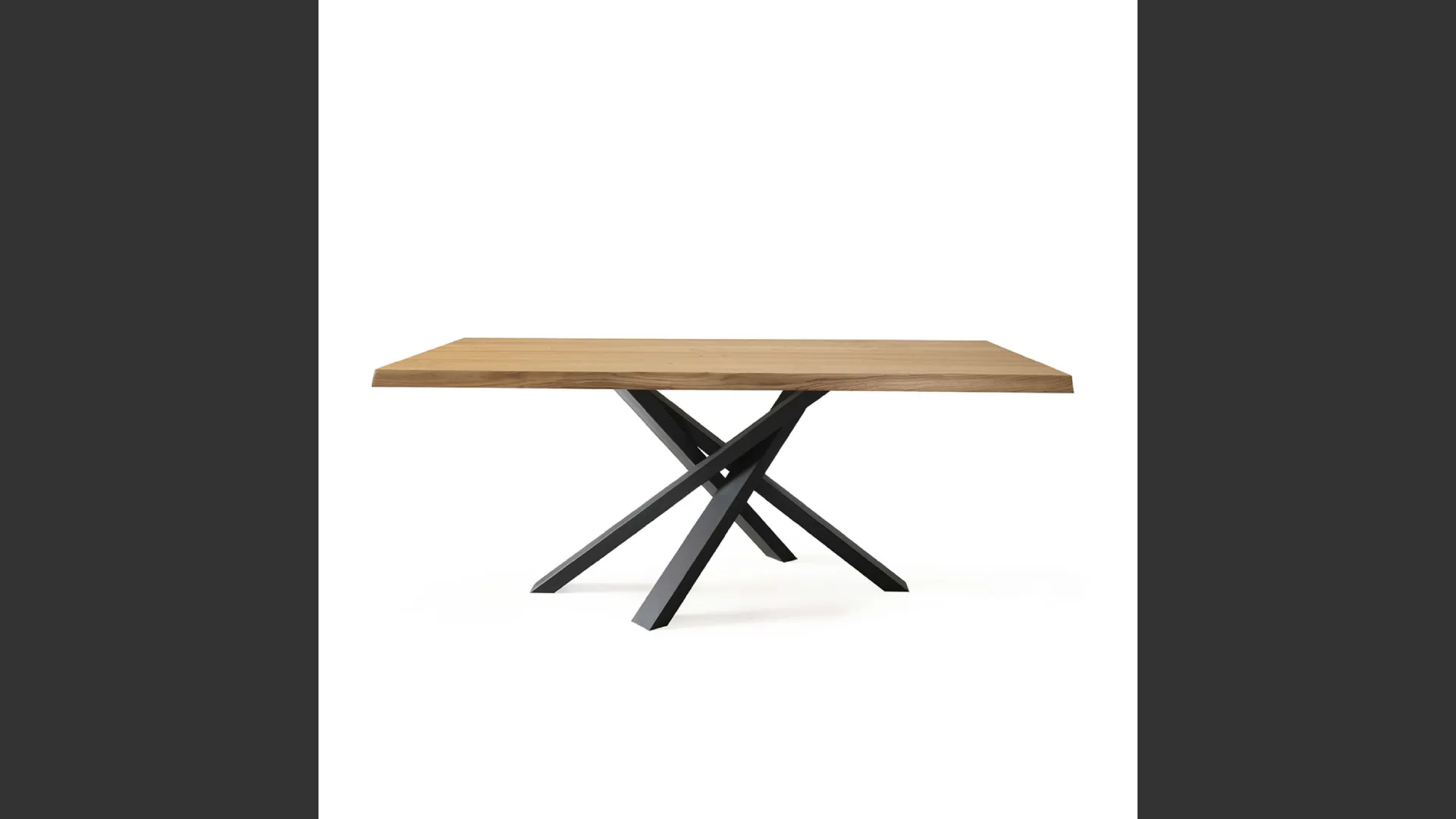 Fixed table. Painted metal base. 5 cm thick veneered top.